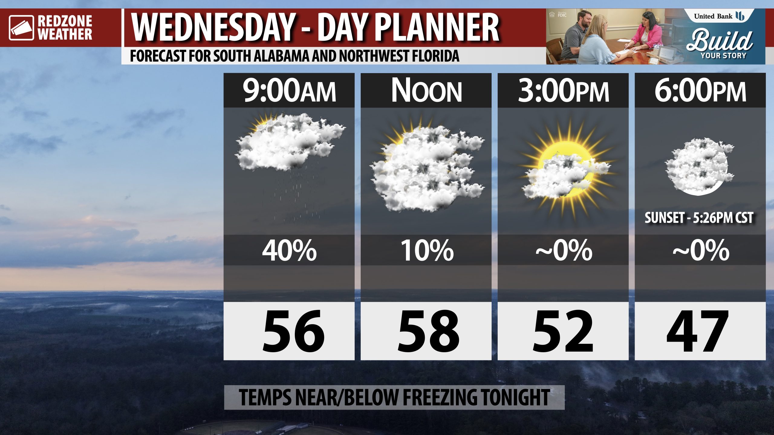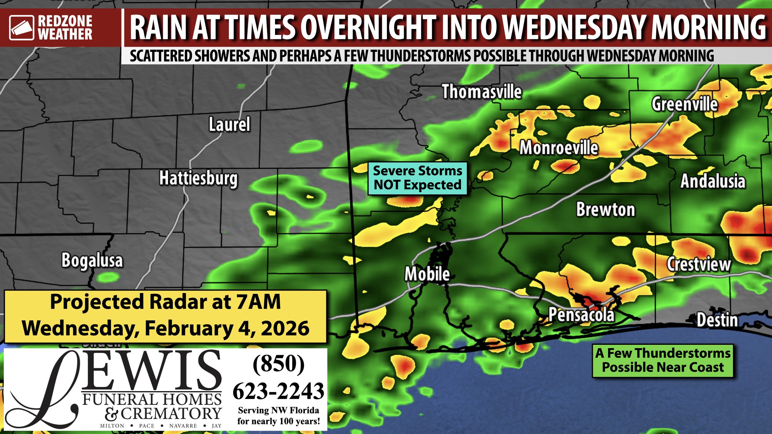 See all the details in your Wednesday morning RedZone Weather forecast video. My next forecast video will be posted by 7:15AM tomorrow morning. I will have updates posted throughout the day, as needed, in the RedZone Weather app.