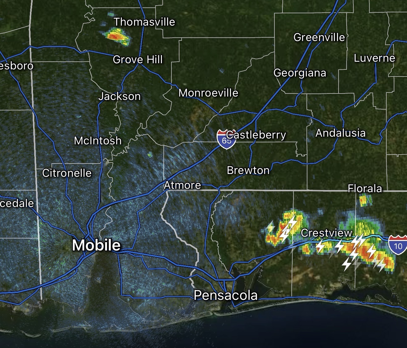 SPOTTY STORMS CONTINUE TO DEVELOP… Rain and storms continue to develop this afternoon in parts of Santa Rosa, Okaloosa, Walton, and now Clarke County.