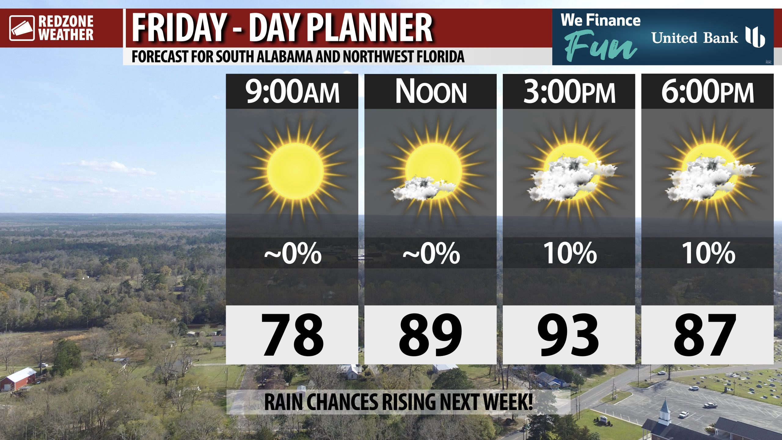 See all the details in your Friday morning RedZone Weather forecast video. My next forecast video will be posted by 7:15AM tomorrow morning. I will have updates posted throughout the day, as needed, in the RedZone Weather app.