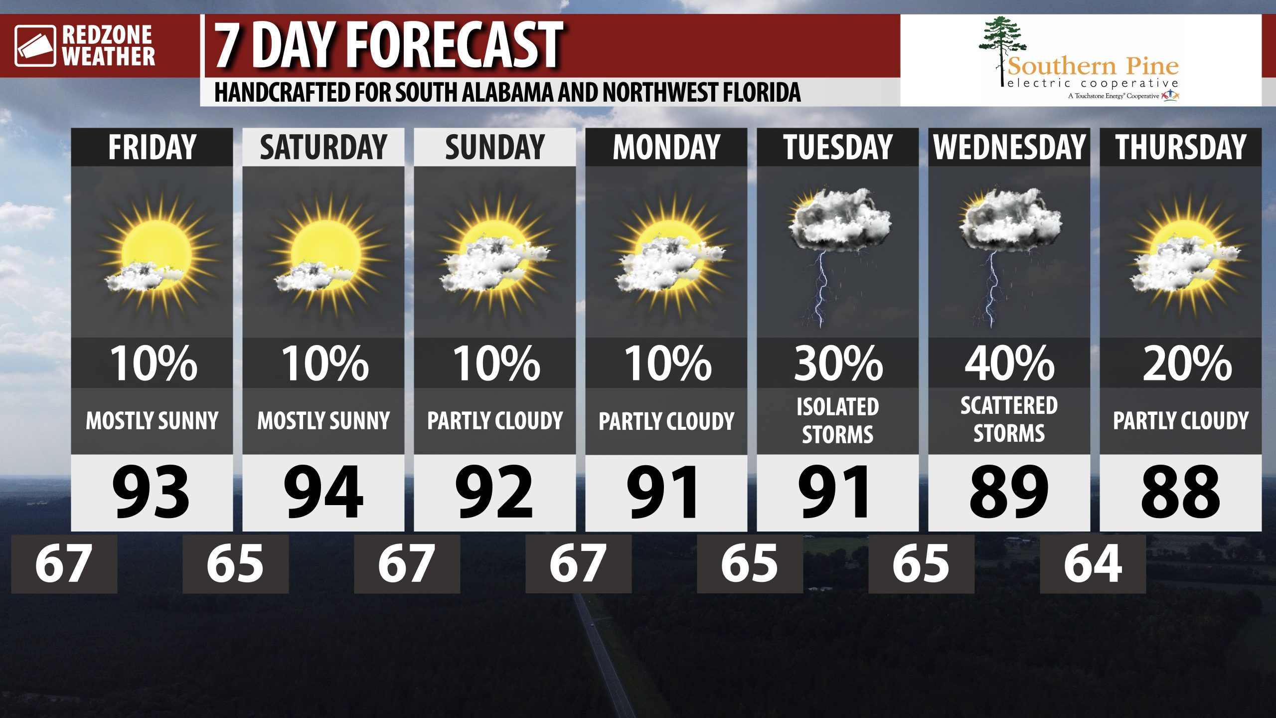 TROPICS: CARIBBEAN & GULF REMAIN QUIET… The Gulf and Caribbean Sea are expected to remain quiet over the weekend and into early next week. We note that some of the longer range models are hinting at some development in the 10-12 day range in the western Caribbean Sea, but it’s far too early to know if this will materialize into a real tropical system or if it is model mischief instead. I’ll keep you posted about it in the RedZone Weather app.