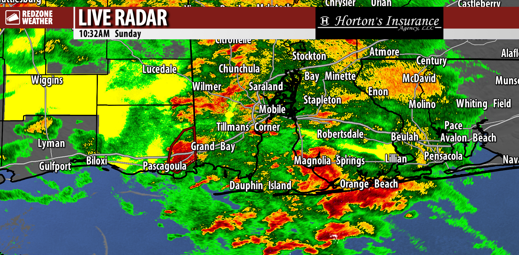 TORNADO WARNING IN S.E. MISSISSIPPI… Tornado Warning continues for eastern Jackson County, Mississippi till 10:45AM. Thunderstorms continues to remain offshore from Orange Beach, Gulf Shores, and Perdido Key for now. Good news. These cells are rotating, but not close enough to shore to prompt a tornado warning (yet?). Watching carefully.