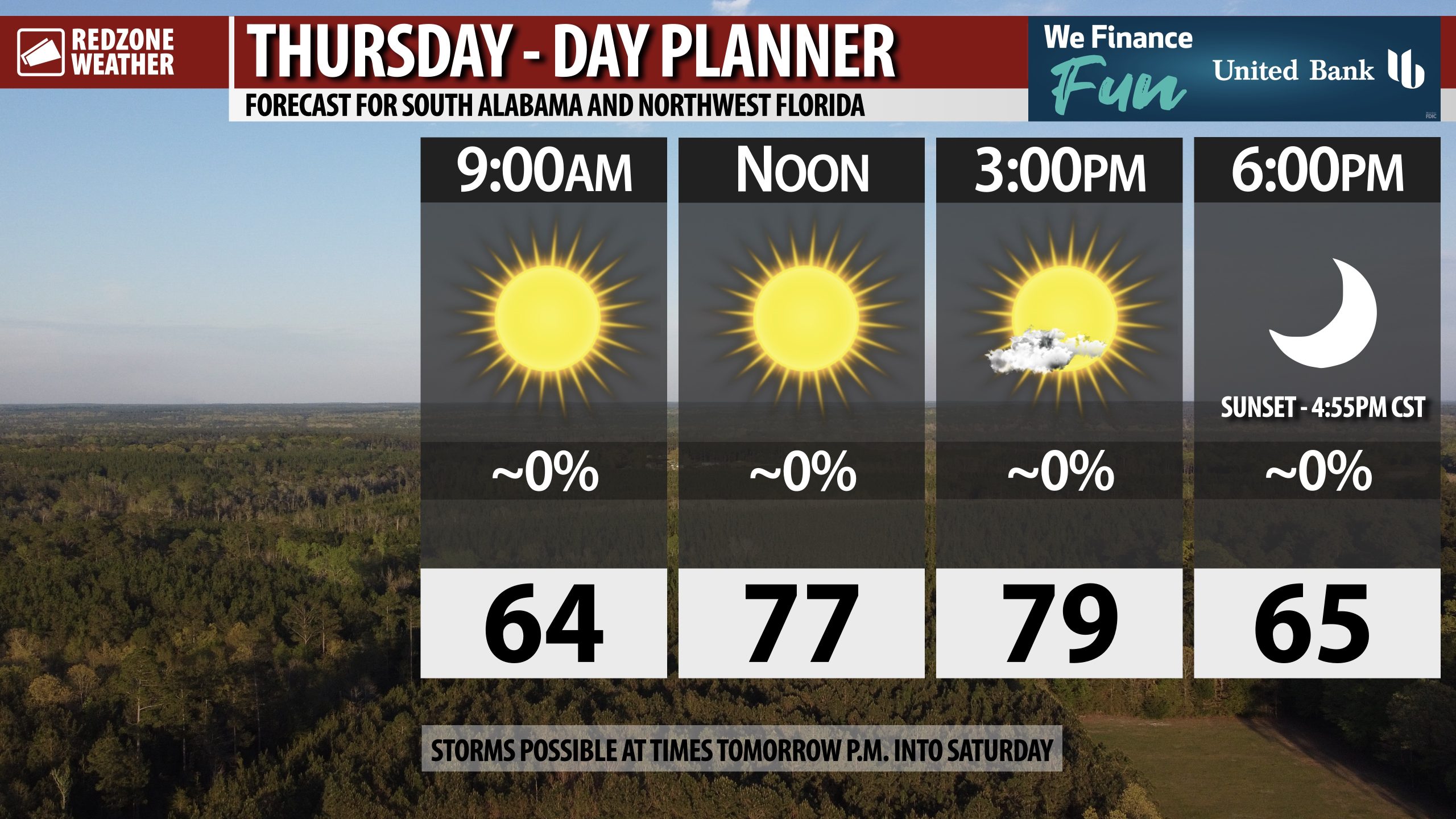 See all the details in your Wednesday morning RedZone Weather forecast video. My next forecast video will be posted by 7:15AM tomorrow morning. I will have updates posted throughout the day, as needed, in the RedZone Weather app.