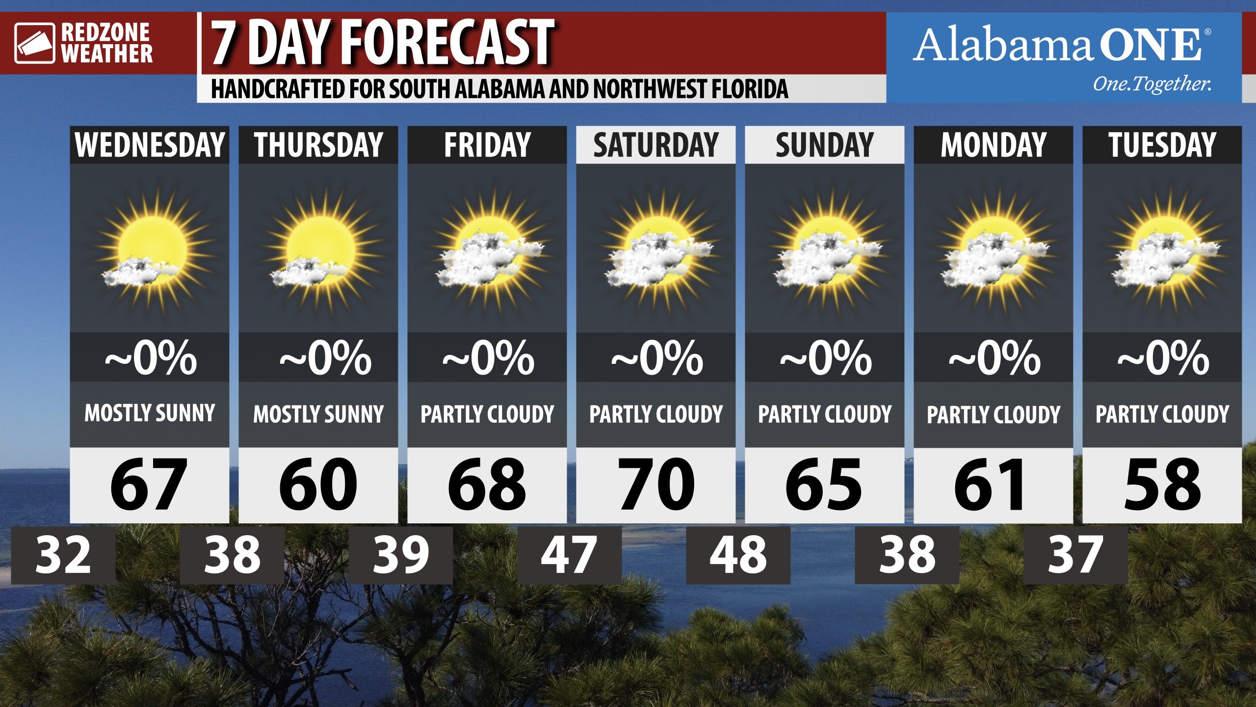 Posted inBlog 8:11AM December 10, 2025 Posted by spinks December 10, 2025No Comments NICE WEATHER OVER NEXT FEW DAYS… Mild days and chilly nights are coming up today, tomorrow, and Friday. Afternoon highs will generally be in the 60s. 50s possible for inland areas tomorrow. We warm to near 70° by Saturday! Post navigation Previous Post 6:58AM December 10, 2025