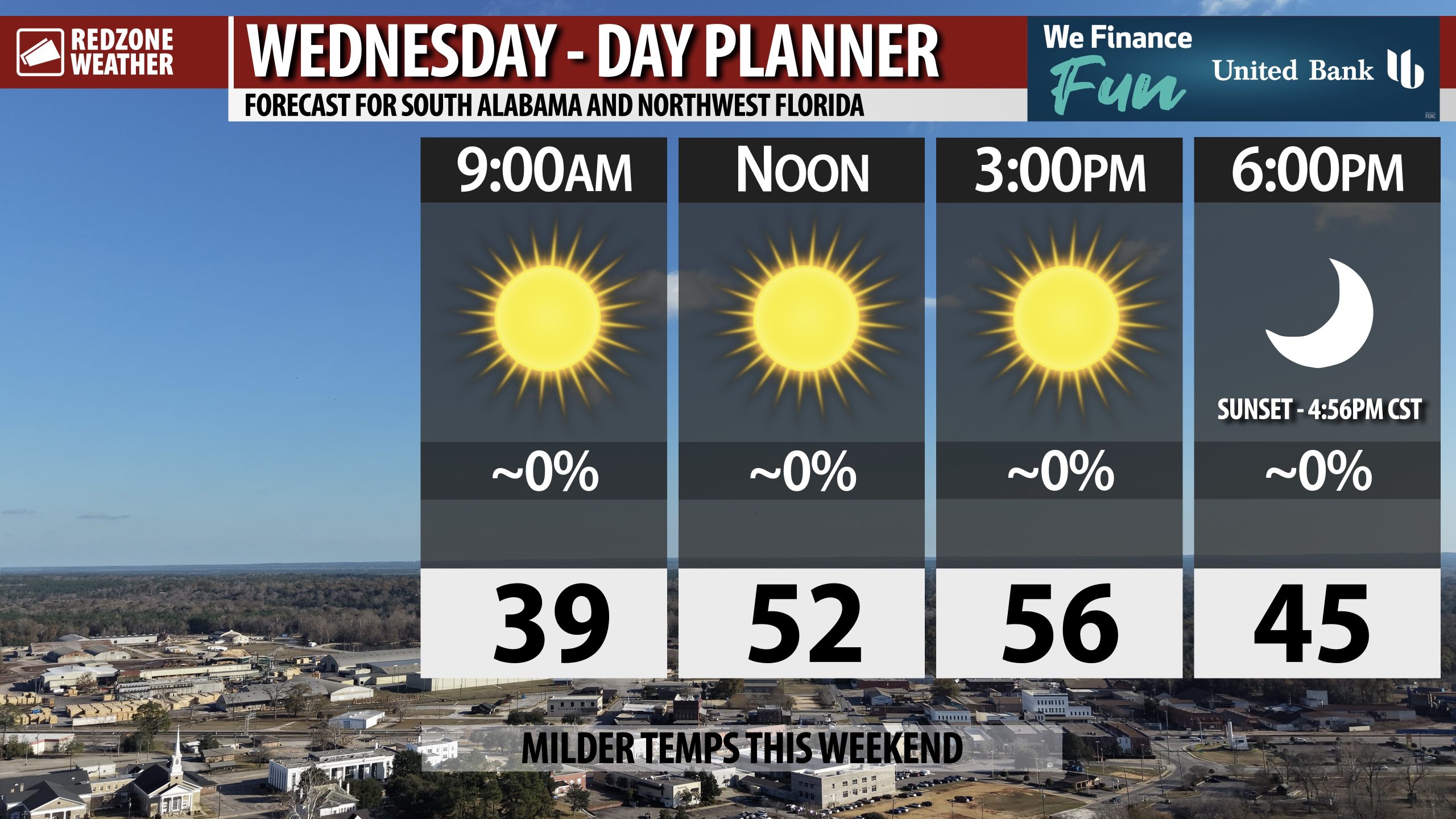 Most locales across south Alabama and northwest Florida have temperatures in the 30s as we approach 10 o’clock. We’re headed to the mid 20s for overnight lows across inland areas and upper 20s closer to I-10 by daybreak Wednesday.
