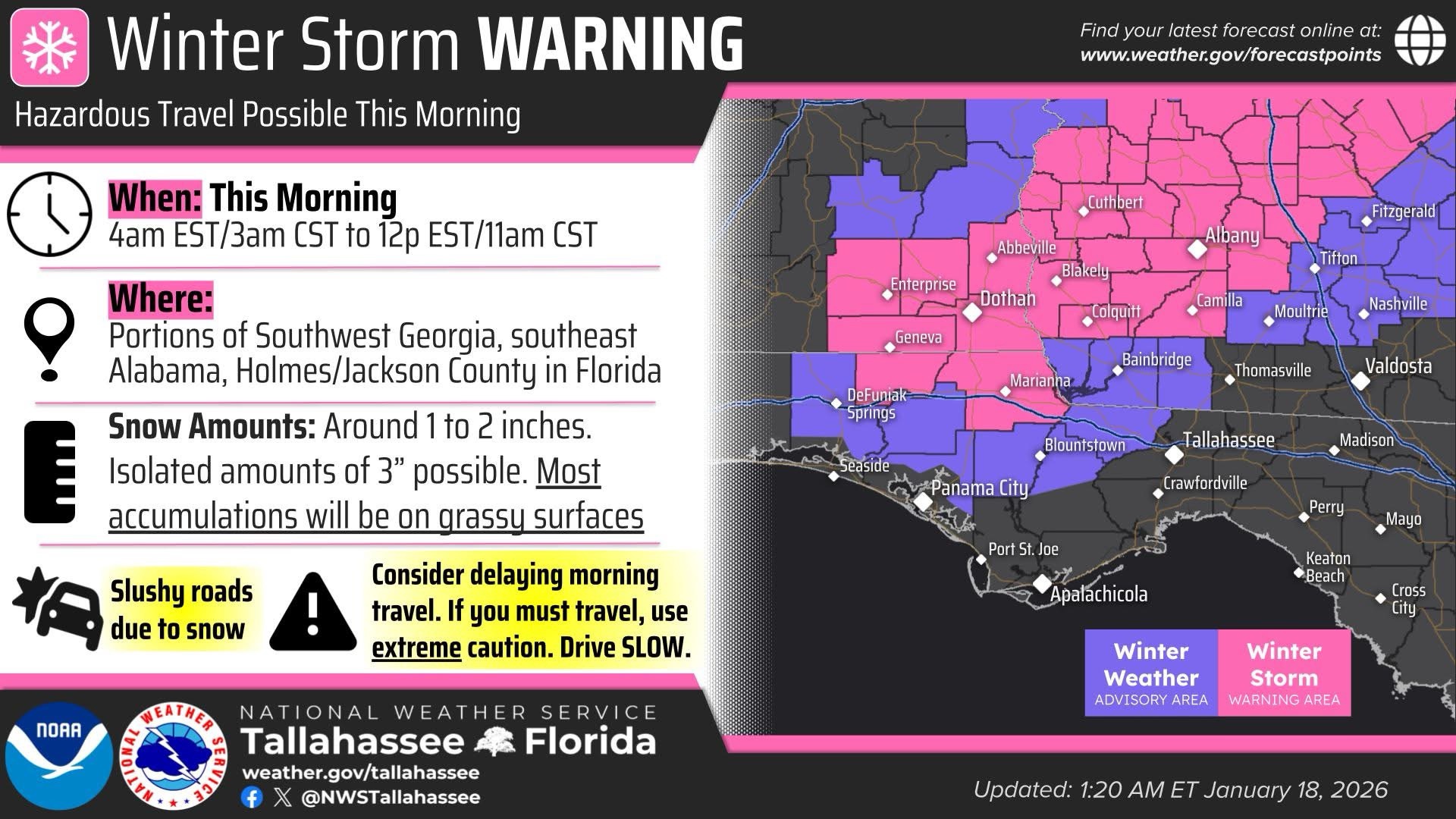 WINTER STORM WARNING FOR SOUTHEAST ALABAMA… Coffee, Dale, Henry, Houston, Geneva, Holmes (FL), and Jackson (FL) counties are now under a Winter Storm Warning.