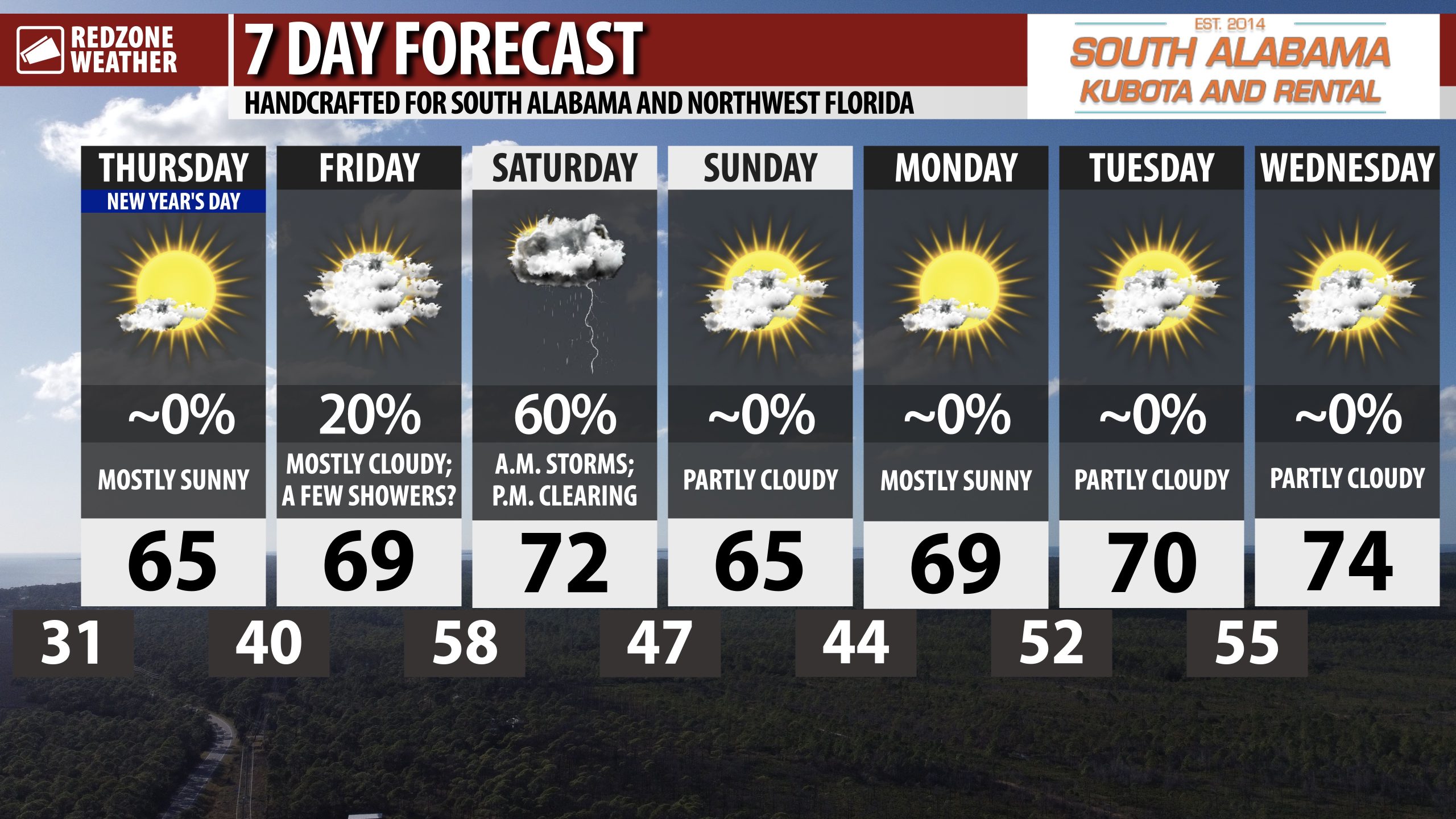 The Storm Prediction Center maintains a Level 1 (out of 5) severe weather risk valid for Saturday for all of northwest Florida and much of southwest Alabama.