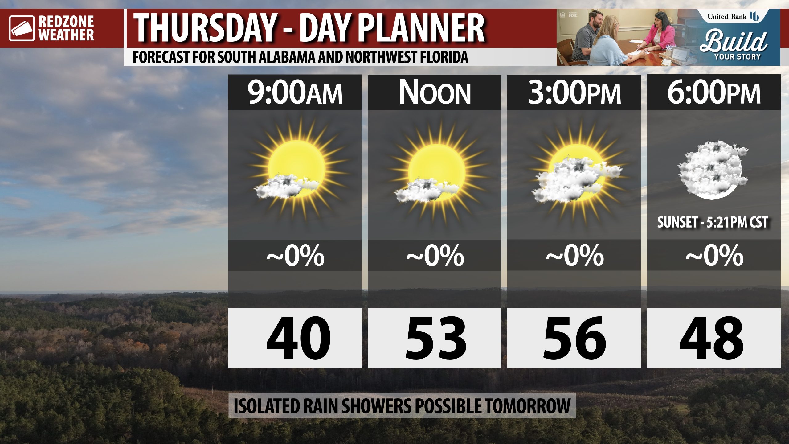See all the details in your Thursday RedZone Weather forecast video. My next forecast video will be posted by 7:15AM tomorrow morning. I will have updates posted throughout the day, as needed, in the RedZone Weather app.