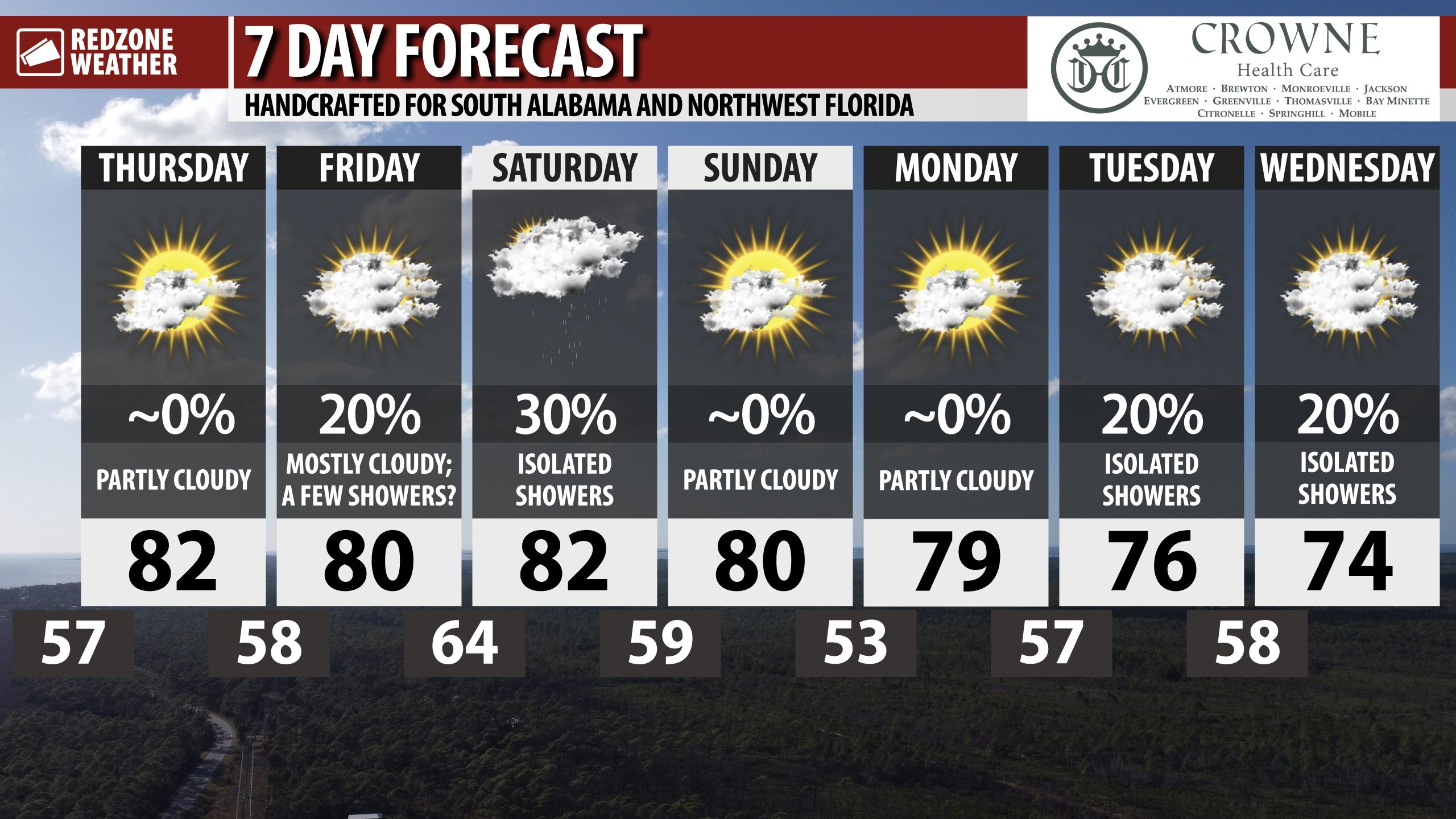 We're dry across south Alabama and northwest Florida. Showers possible locally tonight into Friday. pic.twitter.com/OotrN34xez
